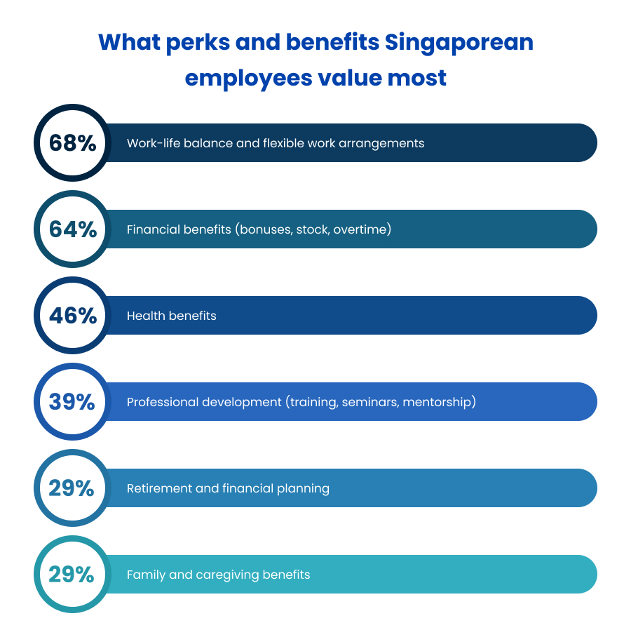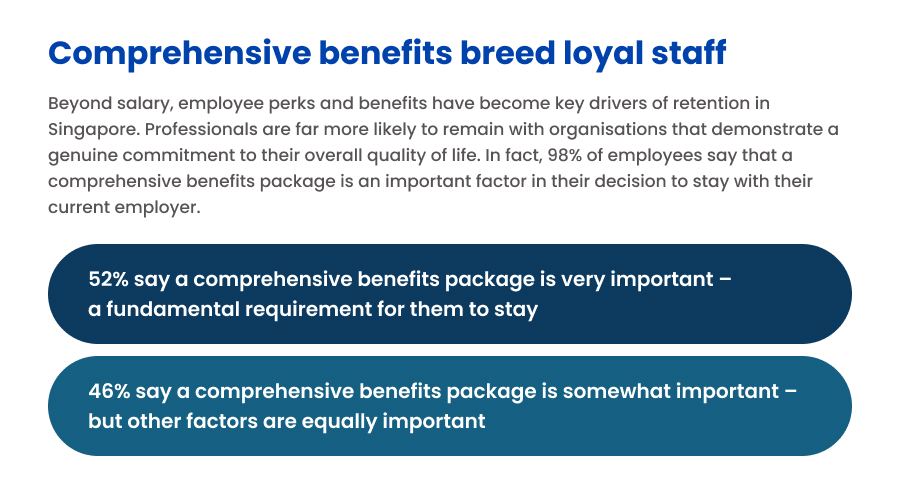 To attract professionals with specialised, high-impact skills, employers in Singapore must clearly communicate the full value proposition of working for their organisation. In a market where salary growth has stabilised, hiring managers gain a competitive edge by highlighting what sets their company apart beyond base pay. Aligning perks and benefits with what Singaporean professionals value most can make all the difference in securing top talent.