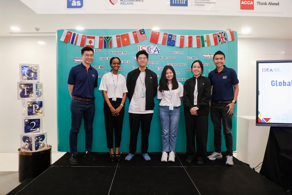 Emily Chong is in Year 1, Business Management, Singapore Management University; Kutlwano Peta is in Year 2, Accounting Sciences, University of Pretoria, South Africa; Phạm Nguyễn Hoàng Quân is in Year 2, Auditing, University of Economics Ho Chi Minh City, Vietnam; and Aw Yong Qi is in Year 2, Accountancy, Singapore University of Social Sciences.